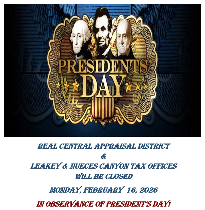 The Real Central Appraisal District would like to remind Taxpayers that the 2024 tax will become delinquent on FEBRUARY 1ST .